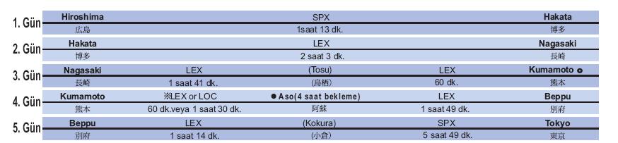Not: Kumamoto, Aso ve Beppu’yu bağlayan ☼ LEX “Aso”nun günlük sefer sayısı oldukça kısıtlıdır. Kumamoto’dan erken bir saatte ayrılmanızı öneririz.